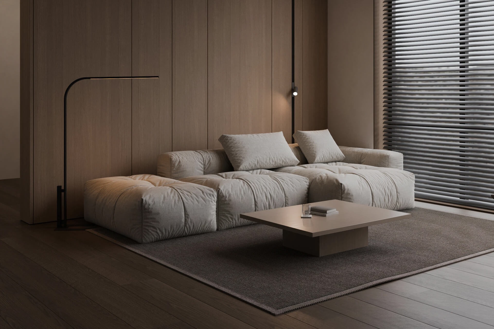 Sophisticated textures and tones bring timeless harmony to modern living spaces.