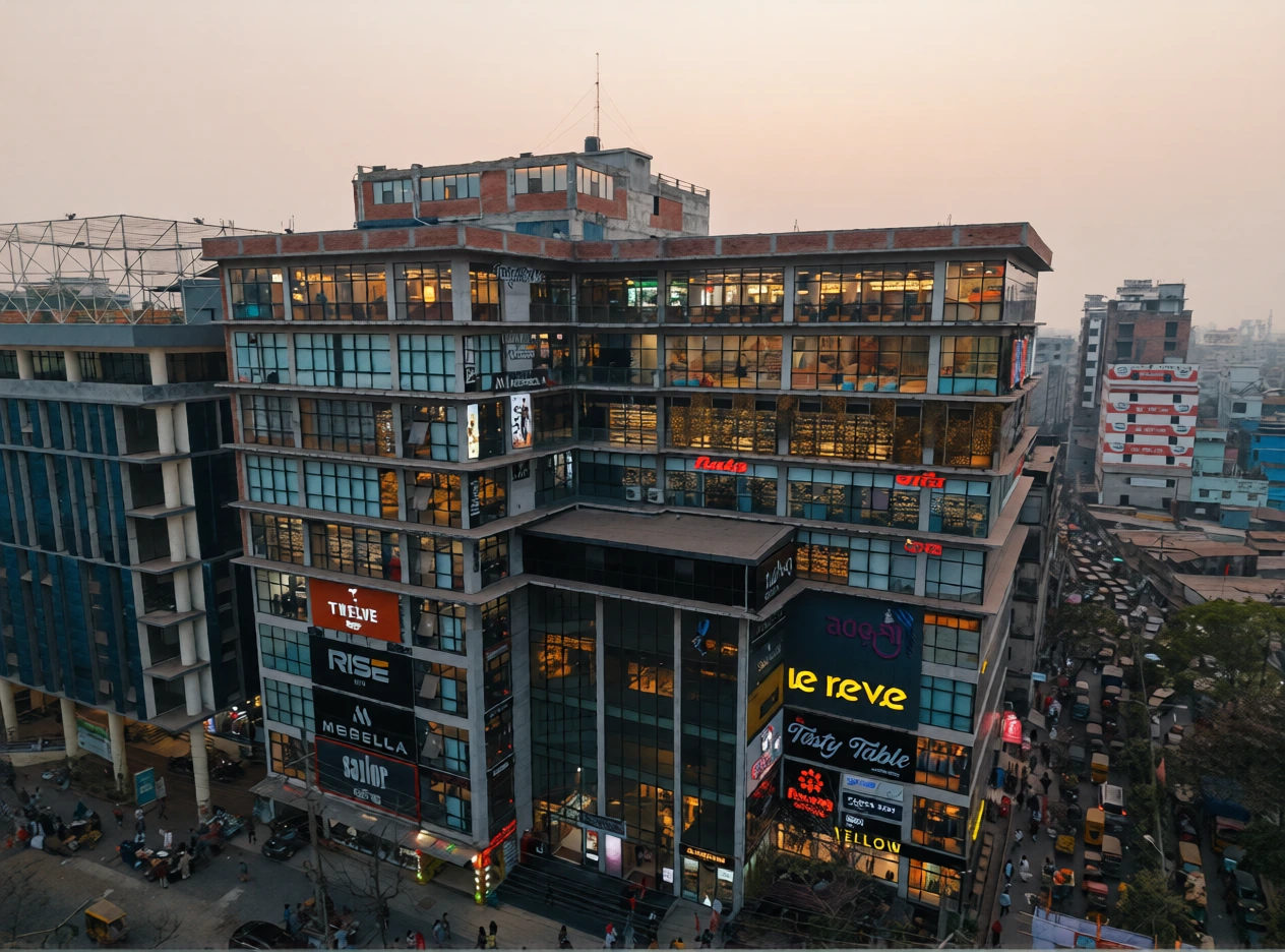 Almash Point is a modern commercial building located at 2 No. Rail Gate in Narayanganj, constructed by Ratna Enterprise. The project was developed to provide a well-planned and organized commercial space in one of the city’s busiest business areas. Built with high construction standards and contemporary architectural planning, the building offers a functional environment for retail shops, offices, and various commercial activities.