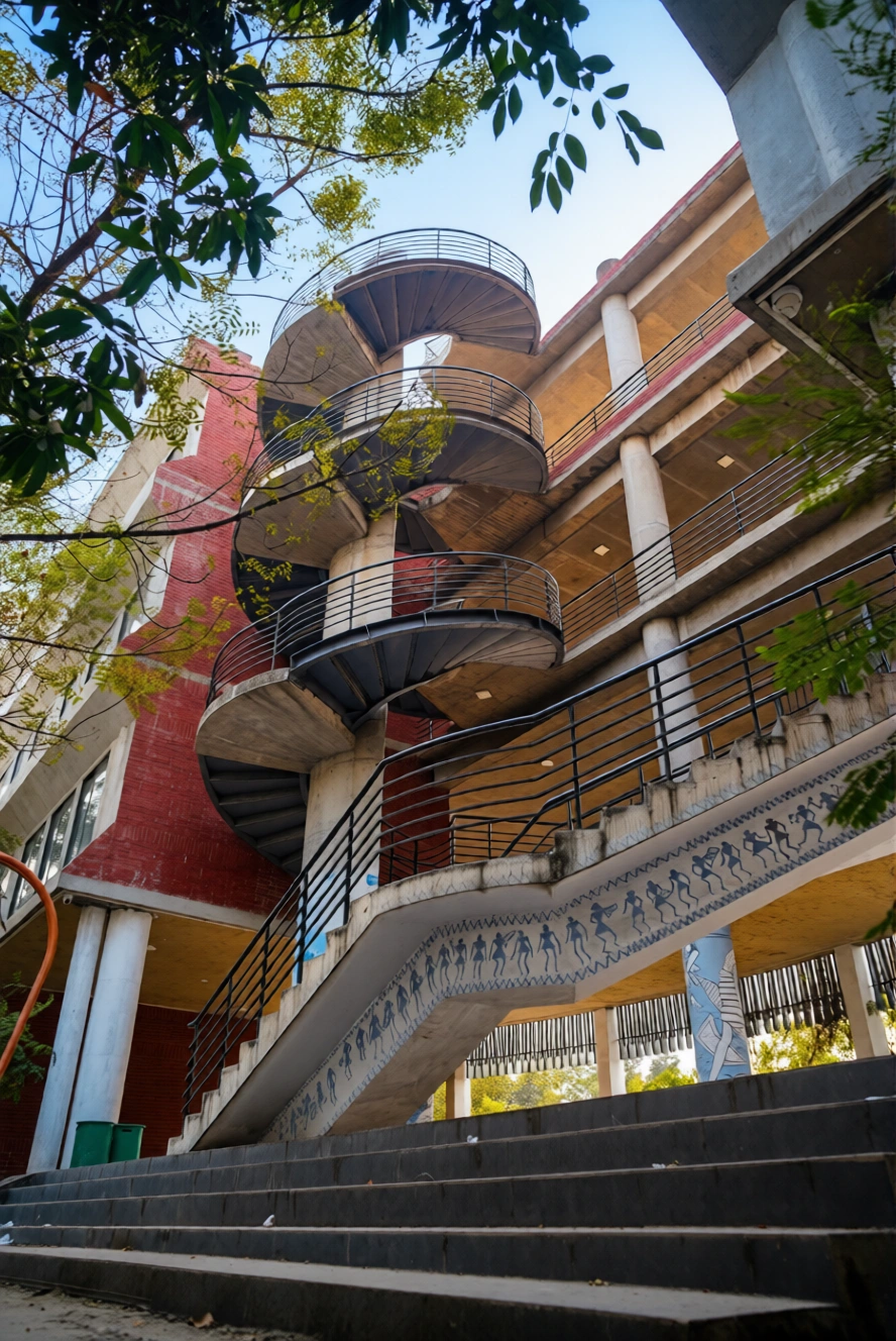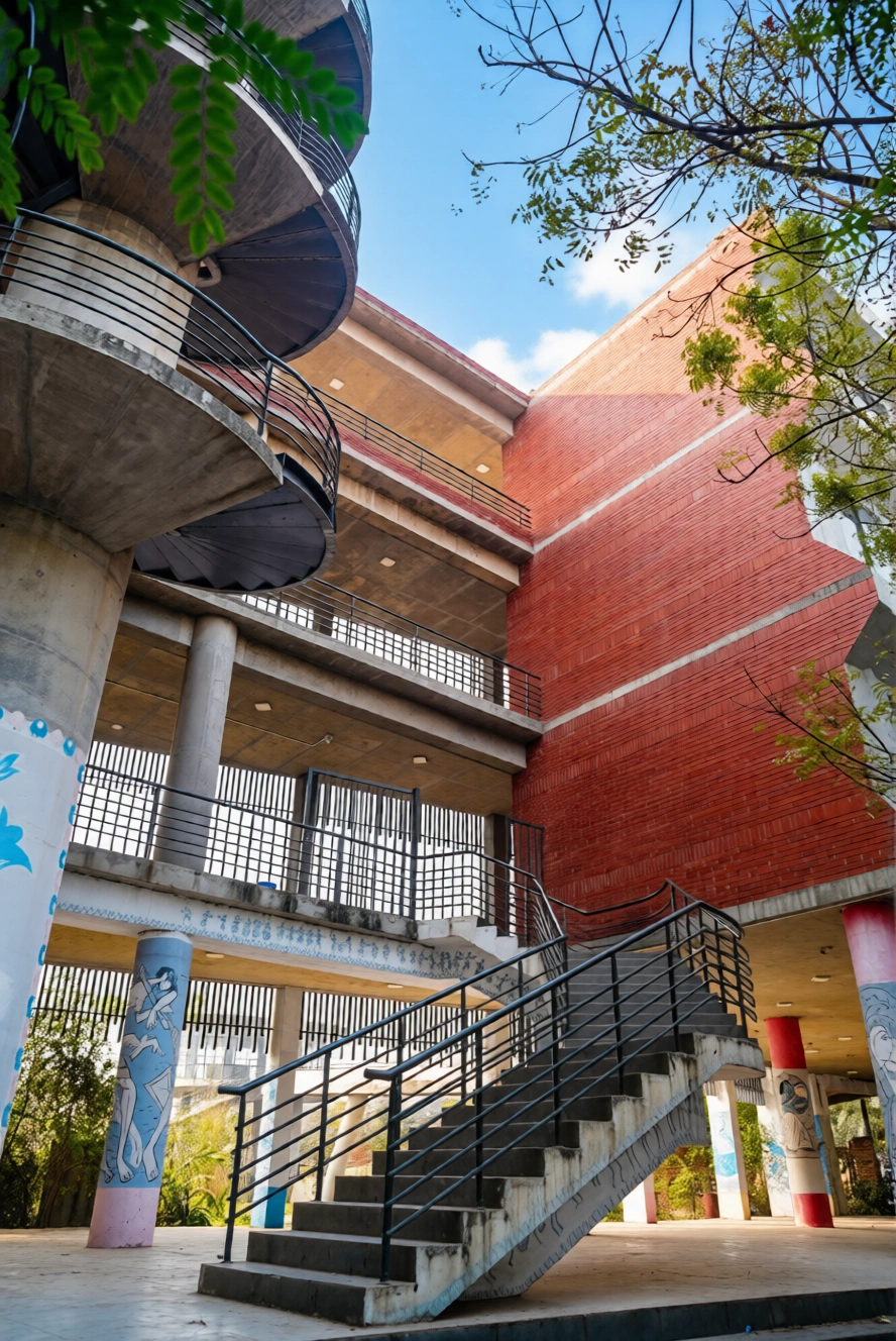 The project is constructed on a land area of approximately 33,000 square feet and features a 4-storied building with a typical floor area of about 7,500 square feet. The architectural design focuses on creating a functional and inspiring environment for students, teachers, and artists. The facility includes well-planned classrooms, studio spaces, administrative offices, and activity areas that support various forms of artistic learning and cultural programs.